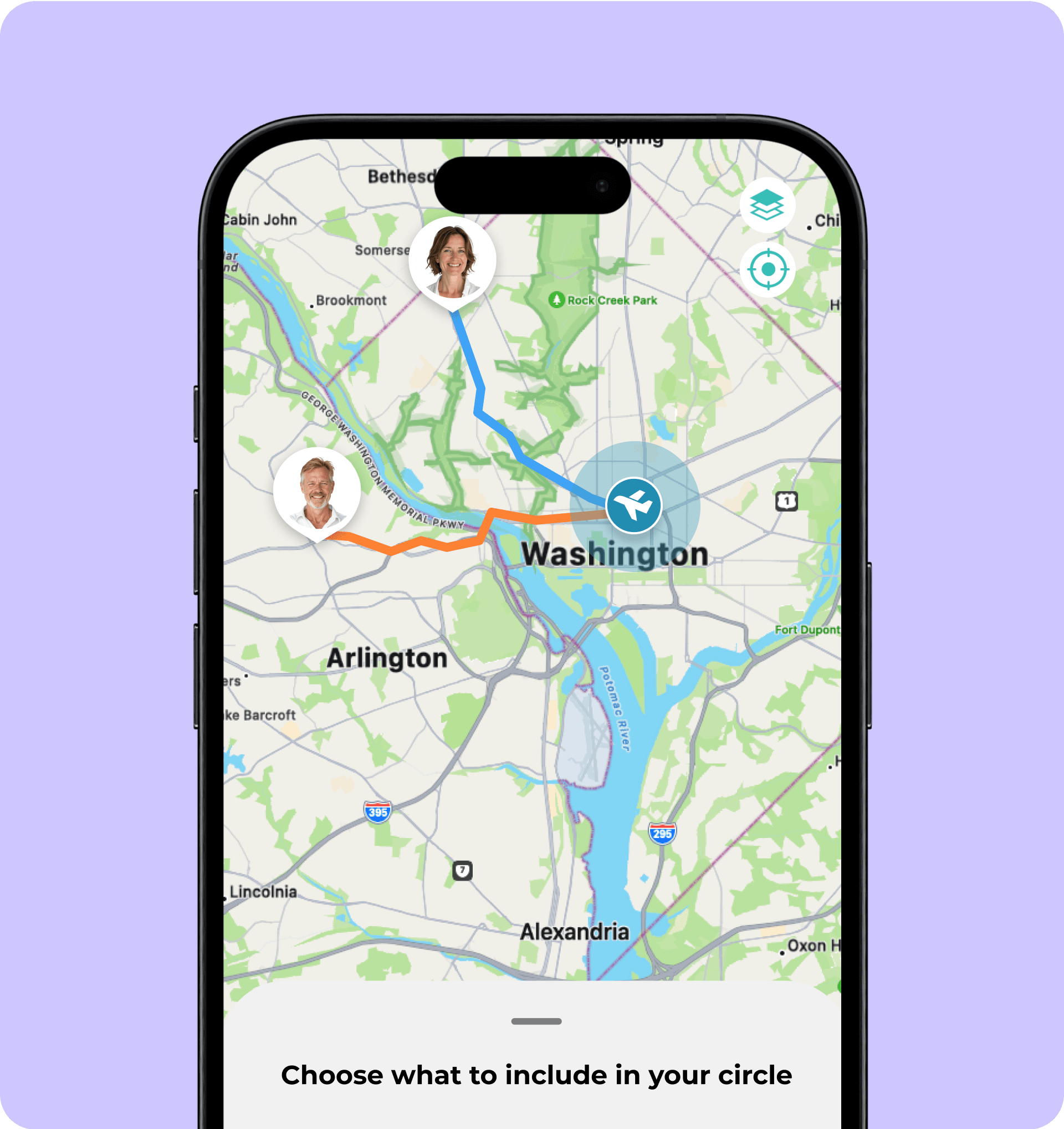Everyone's journey can be seen in the same Circle when you're all meeting up.